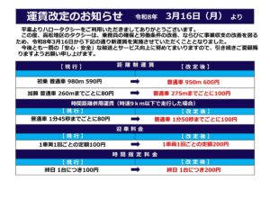 運賃改定のお知らせ